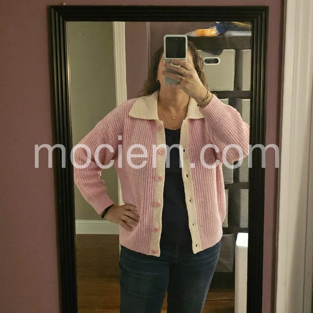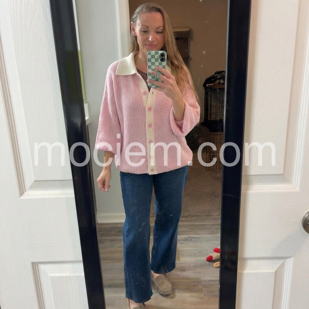 "Yes!It runs true to the garment size chart please choose your size based on your measurements."This sweet pink collared long sleeve cardigan is the perfect addition to any wardrobe. Made from high-quality materials, it offers both comfort and style. Its versatile design allows for easy pairing with any outfit, making it a must-have for any fashion enthusiast. Embrace comfort and sophistication with this cozy sweater.