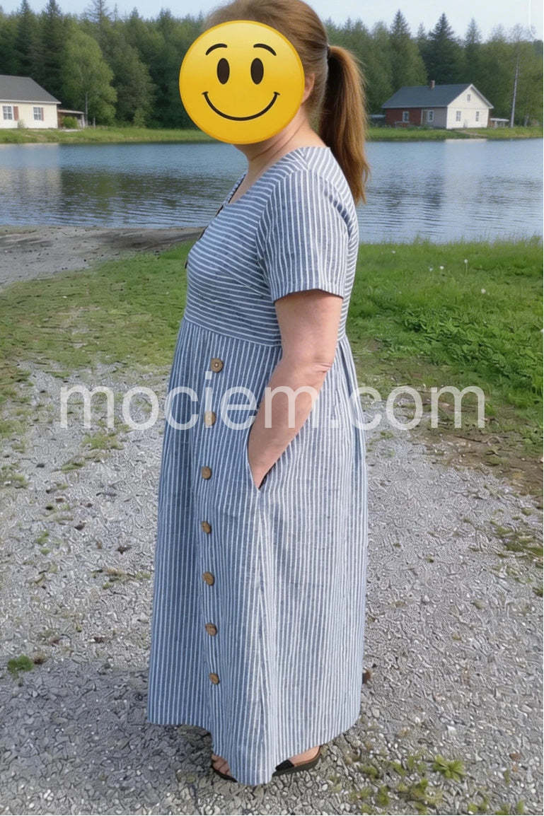 "Yes!It runs true to the garment size chart please choose your size based on your measurements."Elevate your everyday style with this charming Blue and White Striped Midi Dress. Crafted from a lightweight and breathable fabric, this dress offers both comfort and a effortlessly chic look.
