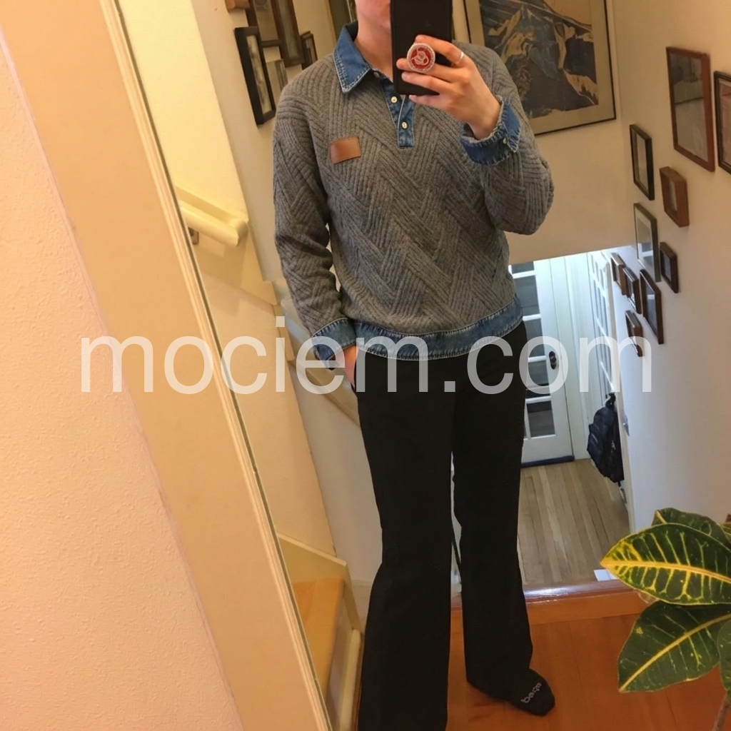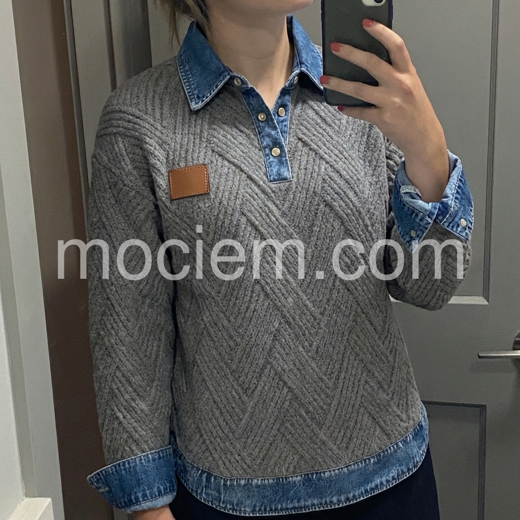 "Yes!It runs true to the garment size chart please choose your size based on your measurements."Elevate your casual wardrobe with this sophisticated grey herringbone knit sweater, featuring a distinctive denim collar that bridges the gap between refined knitwear and relaxed styling. The herringbone texture adds visual depth and dimension, while the contrasting denim collar provides a contemporary edge perfect for layering or wearing standalone. Crafted for versatility, this piece transitions seamlessly from weekend wear to smart-casual settings, offering both comfort and polished appeal.