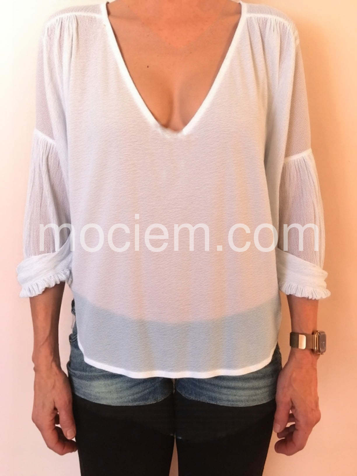 Simple White Plain V-Neck Top