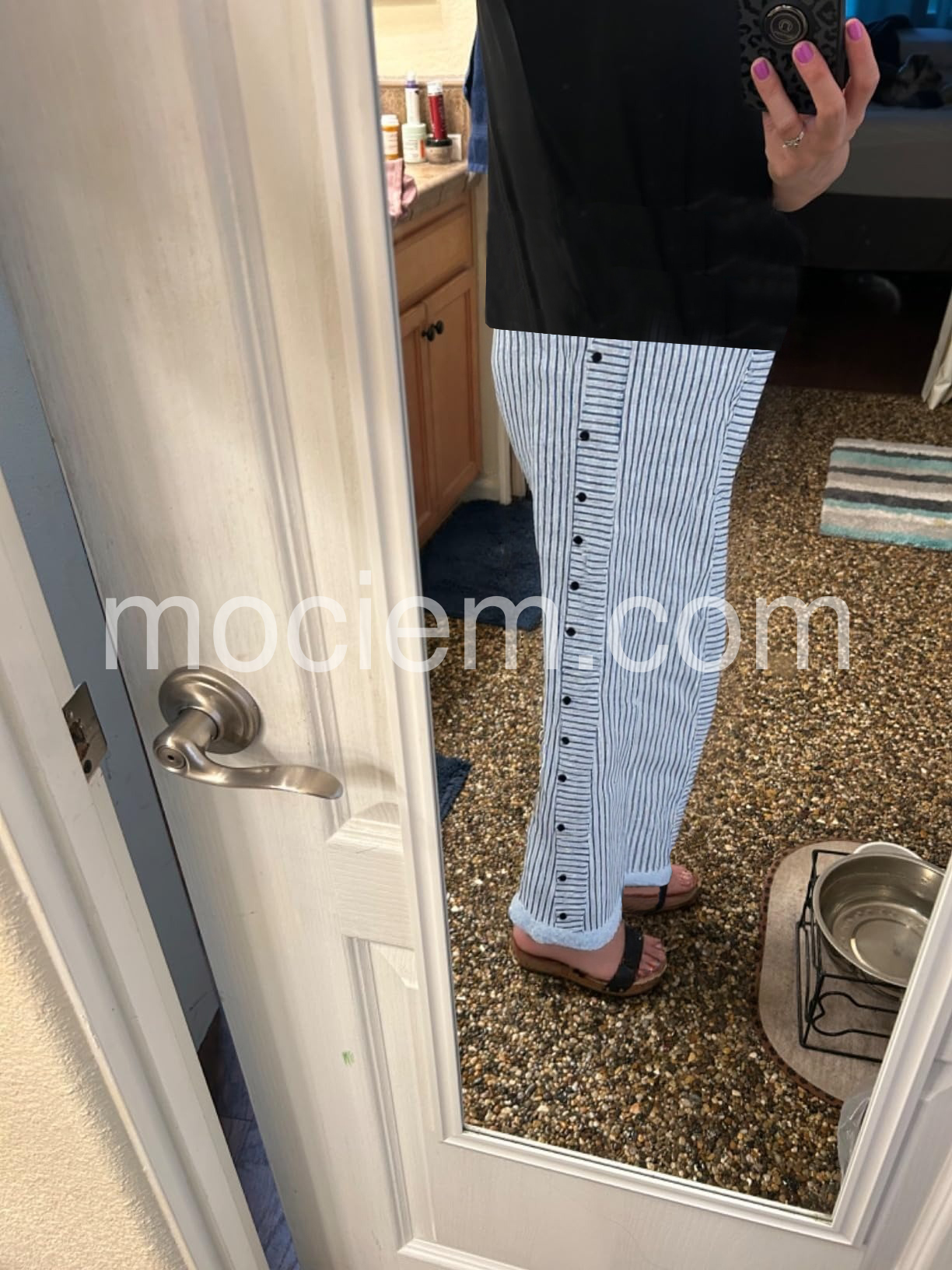 "Yes!It runs true to the garment size chart please choose your size based on your measurements."Effortless elegance meets everyday practicality in these striped blue pants that transition seamlessly from casual weekends to polished weekday moments. The elastic waistband hugs your silhouette with gentle comfort, while the luxurious rayon-elastane blend—55% rayon, 45% elastane—drapes beautifully and moves with you. Functional side pockets keep your essentials within reach without compromising the sleek silhouette. Whether you're running errands or meeting friends for brunch, these versatile pants deliver that coveted "put-together" feeling with zero effort. Machine washable for easy care, they're the wardrobe staple you'll reach for again and again.