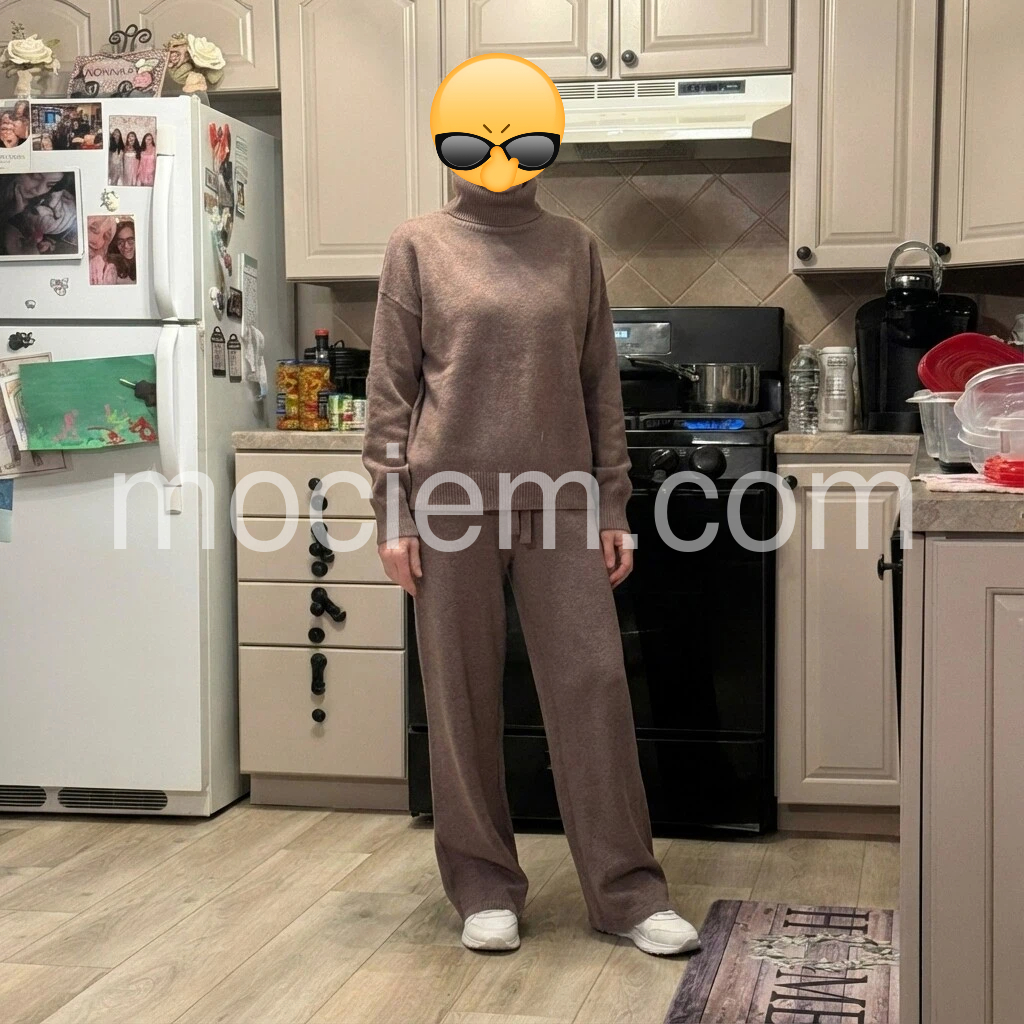 Ultra-chic yet effortless, this knit set takes loungewear to a new level. As comfortable as pajamas, the monocolor two-piece looks like it was pulled straight from the runway. The laid-back glam style features a sweater with a ribbed turtleneck and dropped shoulders and drawstring pants with a gently flared leg.