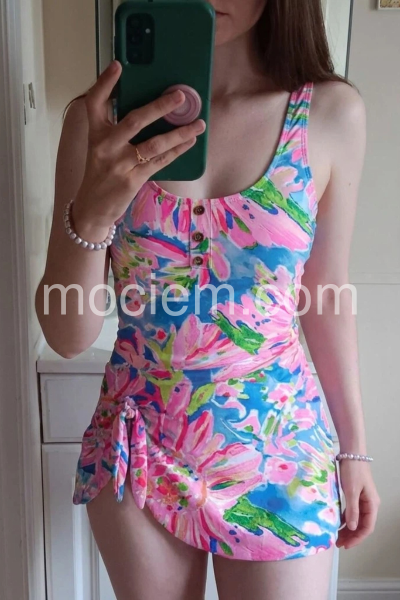 Pink Floral Print Sleeveless Swimwear