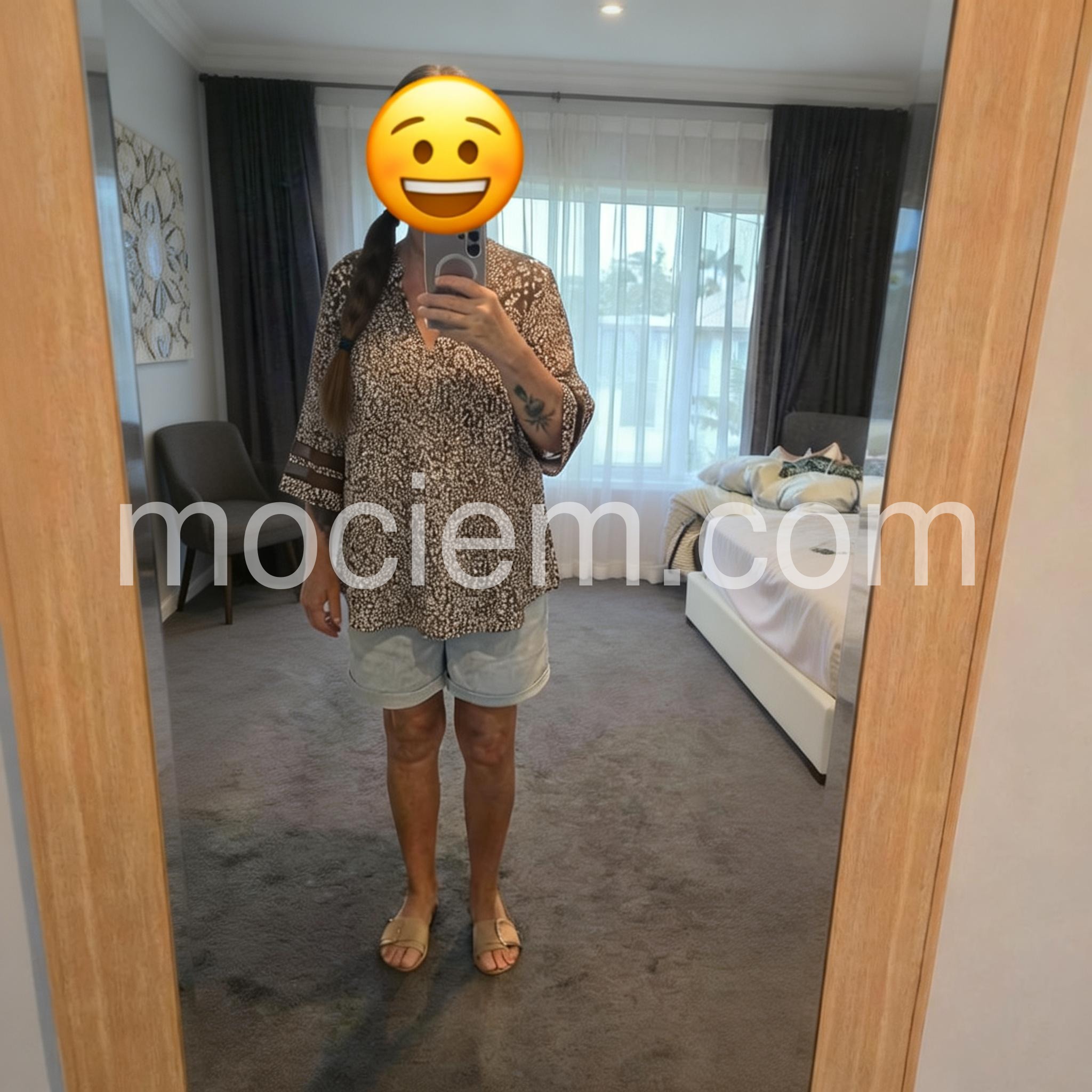 "Yes!It runs true to the garment size chart please choose your size based on your measurements."This brown V-neck 3/4 sleeve top is a versatile addition to any wardrobe. Made from high-quality fabric, it offers both comfort and style. With its classic design and flattering neckline, it is perfect for any occasion. Elevate your look with this timeless piece.