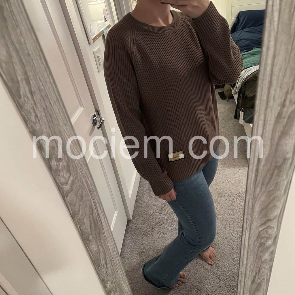 Coffee Plain Round Neck Sweater